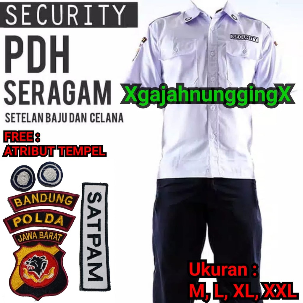 Dibuat dari kain dengan sablon atau bordir warna dasar hijau mula biru madya kuning wira.